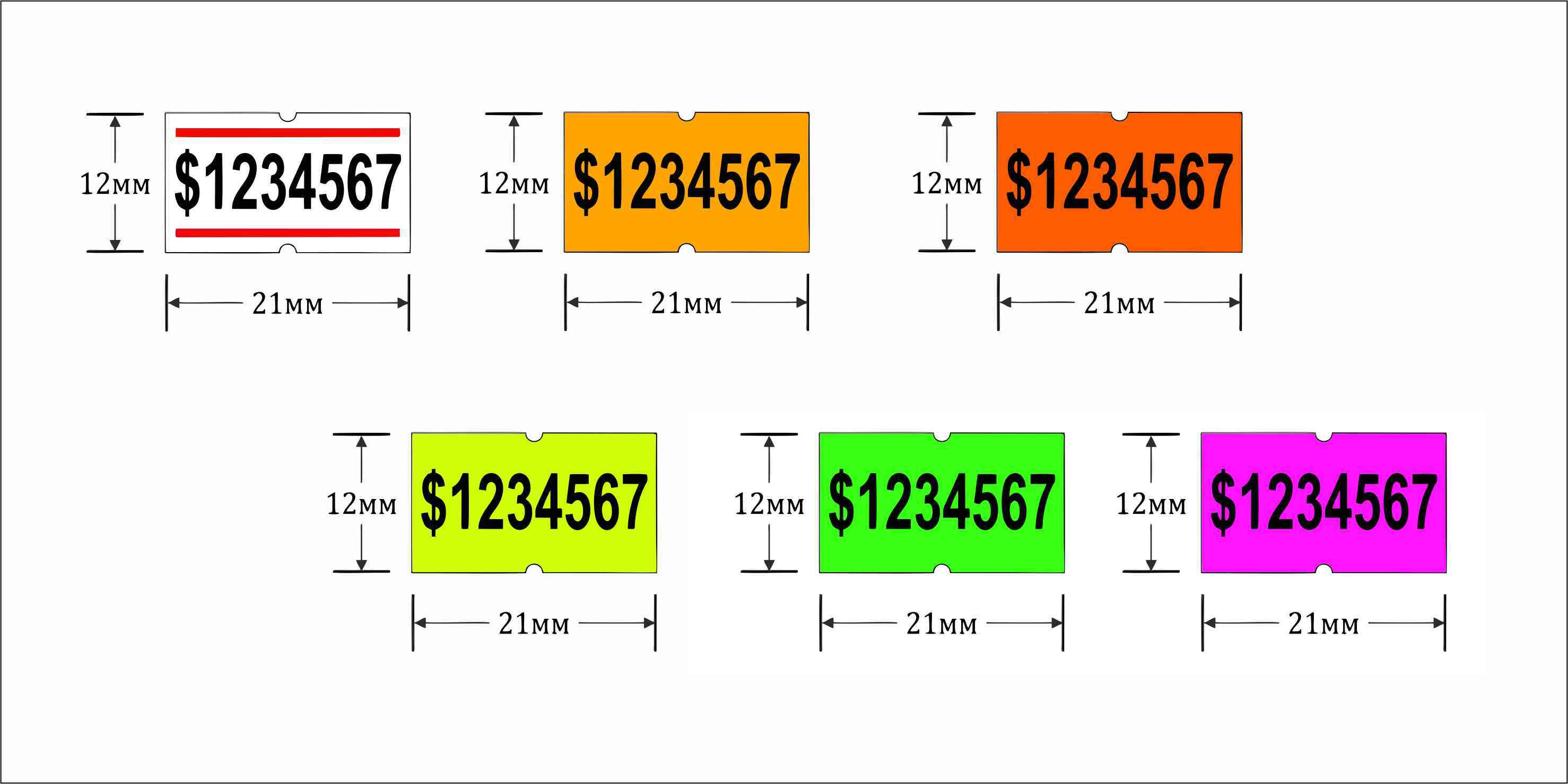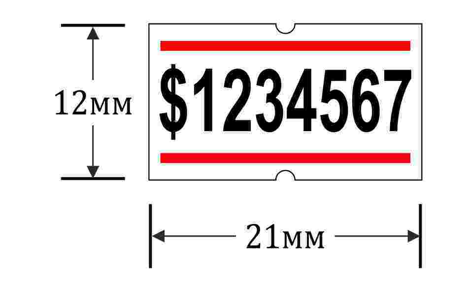 Этикет-лента 12х21мм белая с красными полосами применяется для печати однострочной информации в этикет-пистолетах. Чаще всего наносится следующая информация: